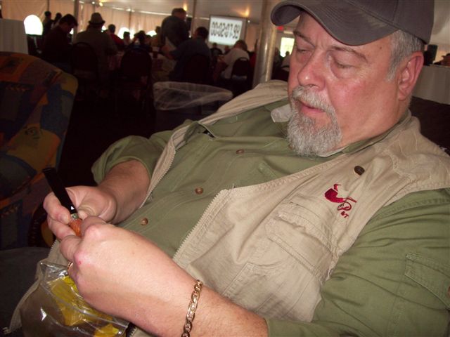 Pipemaker from England Mr Jan Walker waiting to smoke