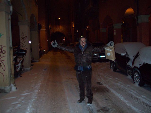snow in Bologna downtown.