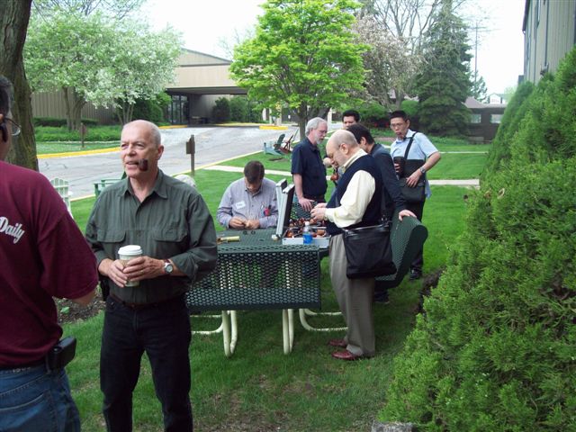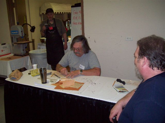 Seating at left Mr Harris from Jasper Alabama begins to smoothing a pipe.