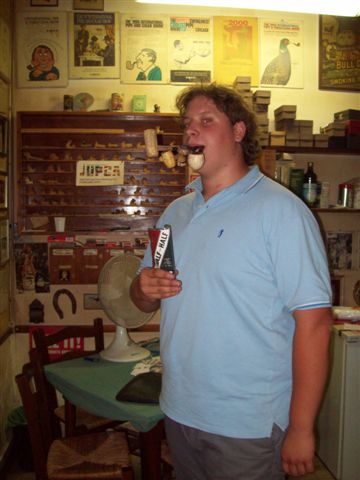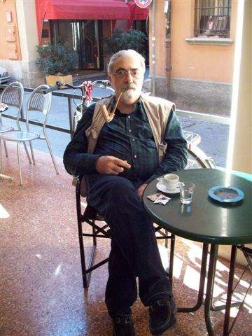 Doctor Andrea Pasquali while smoking a clay pipe in front of my workshop