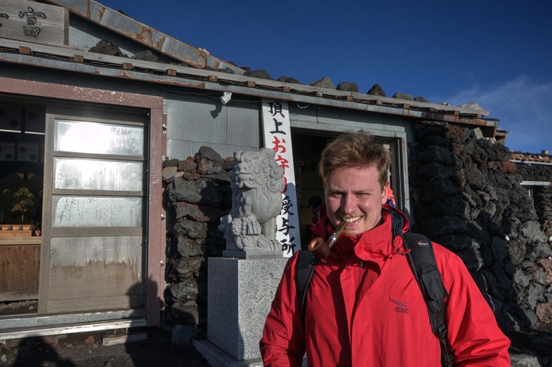 Here is young Bonfiglioli pipe club member in Japan up the Fuji mount