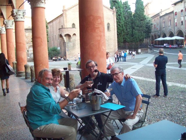 a drink in St Stephen square Bologna downtown